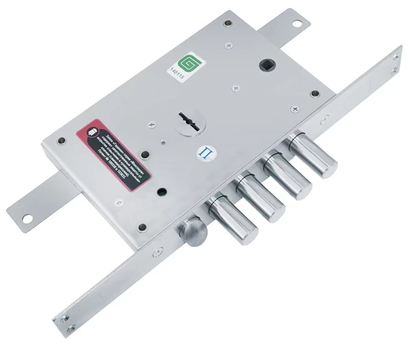 Замок врезной сувальдный ЗВ 2112 ДТ с защелкой серии МАКСИМУМ предназначен для установки в металлические двери, шкафы и сейфы. Подходит для дверей левого открывания. Может устанавливаться с вертикальным приводом для запирания двери на три стороны. Повышенная защита от наиболее распространенных методов вскрытия: самоимпрессии (самоноборного ключа); отмычки - ложные пазы на дисках кодового ротора и сувальдах, увеличенная жесткость пружин сувальд, поворотная втулка, перекрывающая доступ отмычек к сувальдам; "свертыша" - ослабленный зуб рейки хвостовика; высверливания - внутренняя и внешняя бронепластина; взлома -усиленная конструкция засовов. Замок комплектуется 5 ключами.