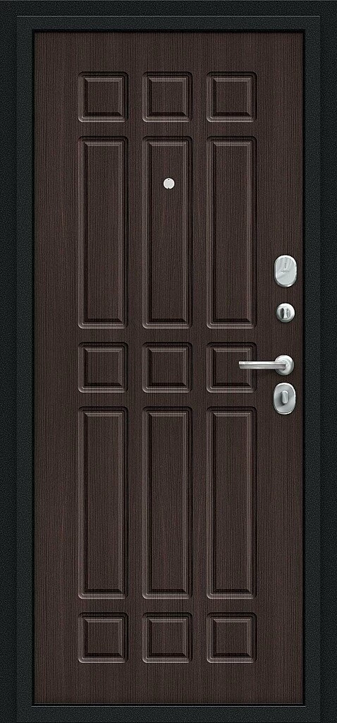 Надежная входная Входная дверь Мило Букле черное/Wenge Veralinga BR4303 премиум класса по цене 30 437 руб. Большая толщина стали защитит от проникновения в ваш дом, квартиру или коттедж. Используется очень качественная фурнитура: замки, цилиндры, ручки, защелки. Покрытие и отделка двери изготовлено под внимательным контролем производителя. Дверь имеет долгий срок службы и гарантию.