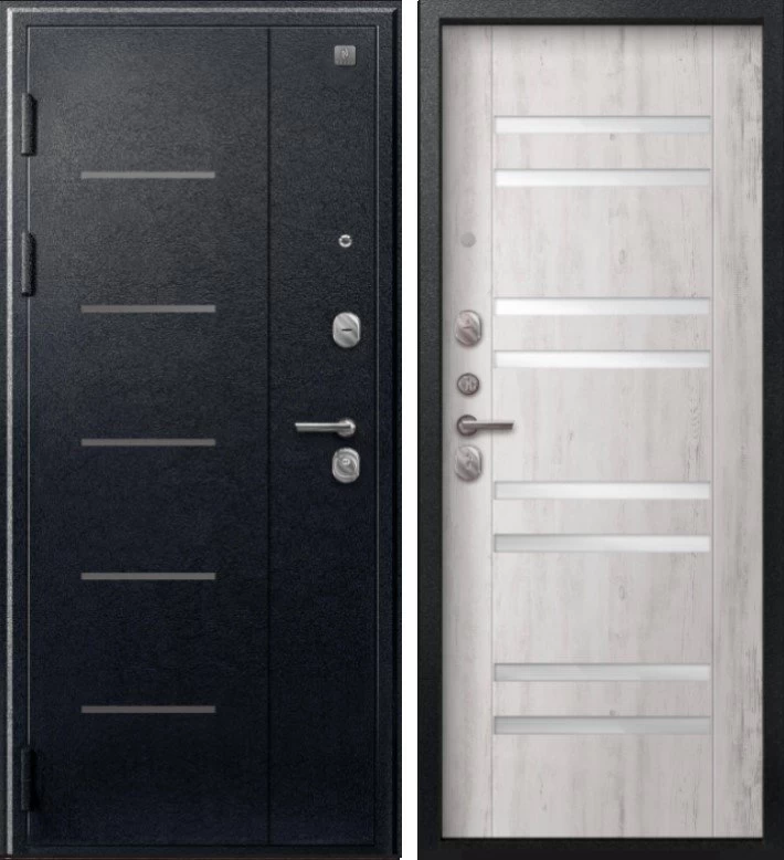 Надежная входная Дверь V-07 Черный муар - Дуб пепельный премиум класса по цене 42 215 руб. Большая толщина стали защитит от проникновения в ваш дом, квартиру или коттедж. Используется очень качественная фурнитура: замки, цилиндры, ручки, защелки. Покрытие и отделка двери изготовлено под внимательным контролем производителя. Дверь имеет долгий срок службы и гарантию.